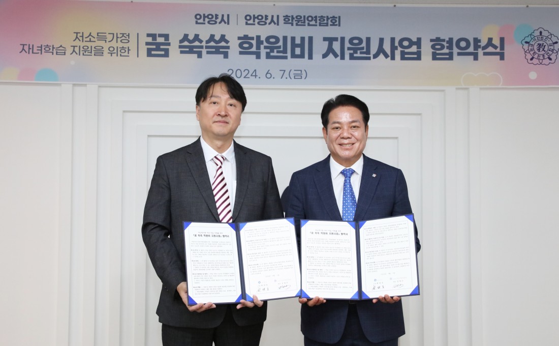 경기 안양시는 안양시학원연합회와 저소득 가정 자녀 학습지원을 위한 ‘꿈 쑥쑥 학원비 지원사업’ 재협약식을 가졌다고 9일 밝혔다.